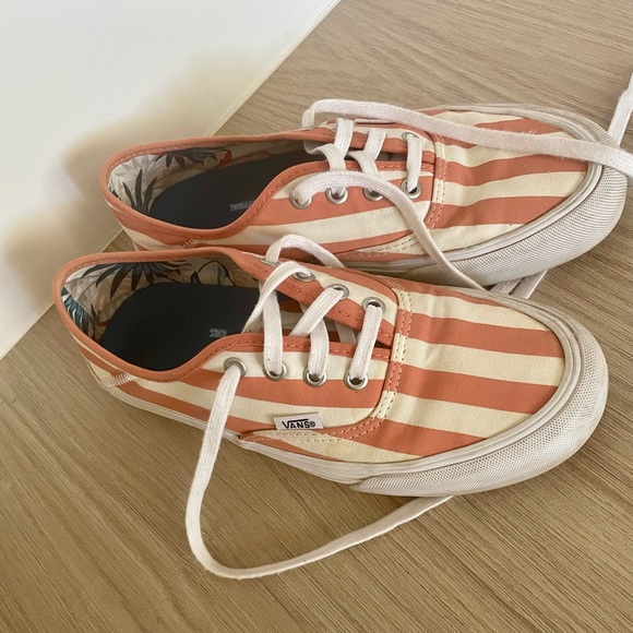 Vans Lace up style shoes UltraCush Women’s size 7.5 Mens size 6 Orange and off white stripe