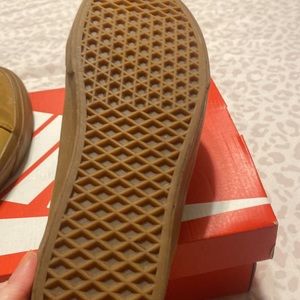 Camel colored vans size 9 men’s. Great condition small stain on toe! Pretty sure it will come out easily! Sole hasn’t even started to wear! Looks new!