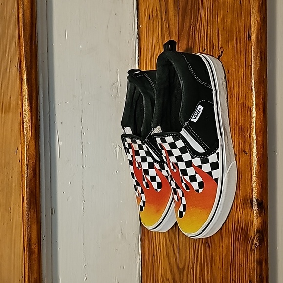 Size: US Youth 4 Flame and checkered Vans Requires cleaning