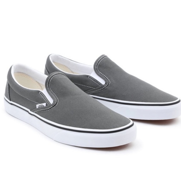 Slid on vans. Worn maybe twice because they’re a bit snug. They’re not as dark as shown in the picture. Just bad lighting