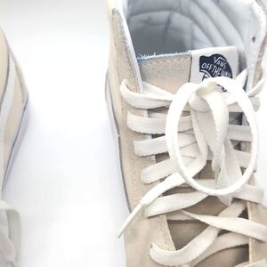 SK8-HI TURTLE DOVE SUEDE GOOD CONDITION. HAS SLIGHT BLUE TRANSFER FEOM JEANS (SEE PICS) ON VERY TOP. NOT REALLY NOTICEABLE. MENS 7 5 WOMENS 9
