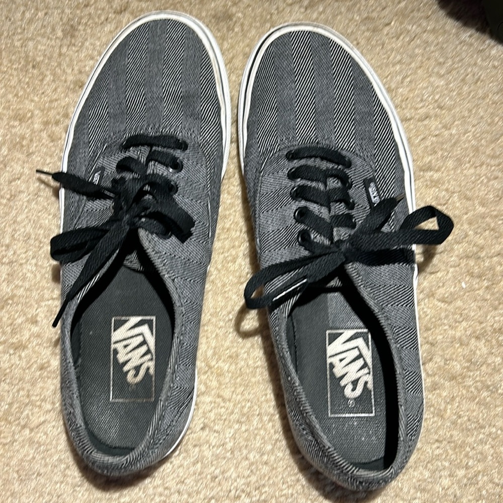 Low top black/ white symmetrical designed vans! Cute, comfortable, with a lot of life still left in them after a good wash 🧼