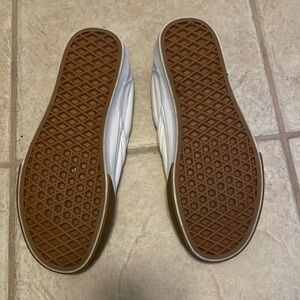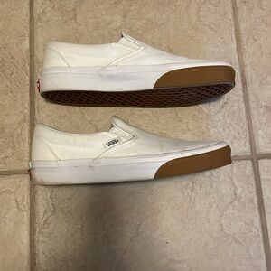 Vans slip on. Size 5.5 men’s/7 Womens. Shoes needs some cleaning but other than that they are in good condition.