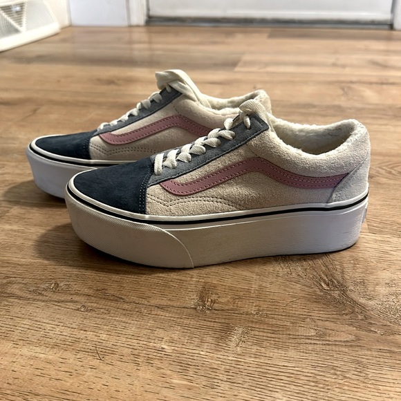 Platform vans. Size 6.5 women’s (5.0 men’s) they are water repellent. Very lightly worn.