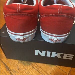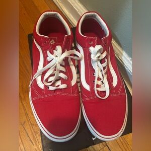 Red vans worn twice stain on one of the shoe laces but basically brand new shoes