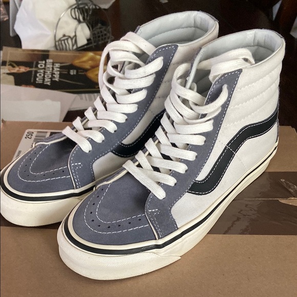 Step up your style with Vans high-top sneakers. Featuring a sleek white and gray design, these shoes offer both comfort and a classic look. Perfect for everyday wear.