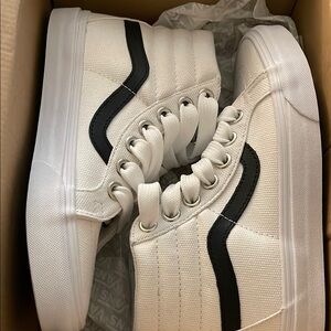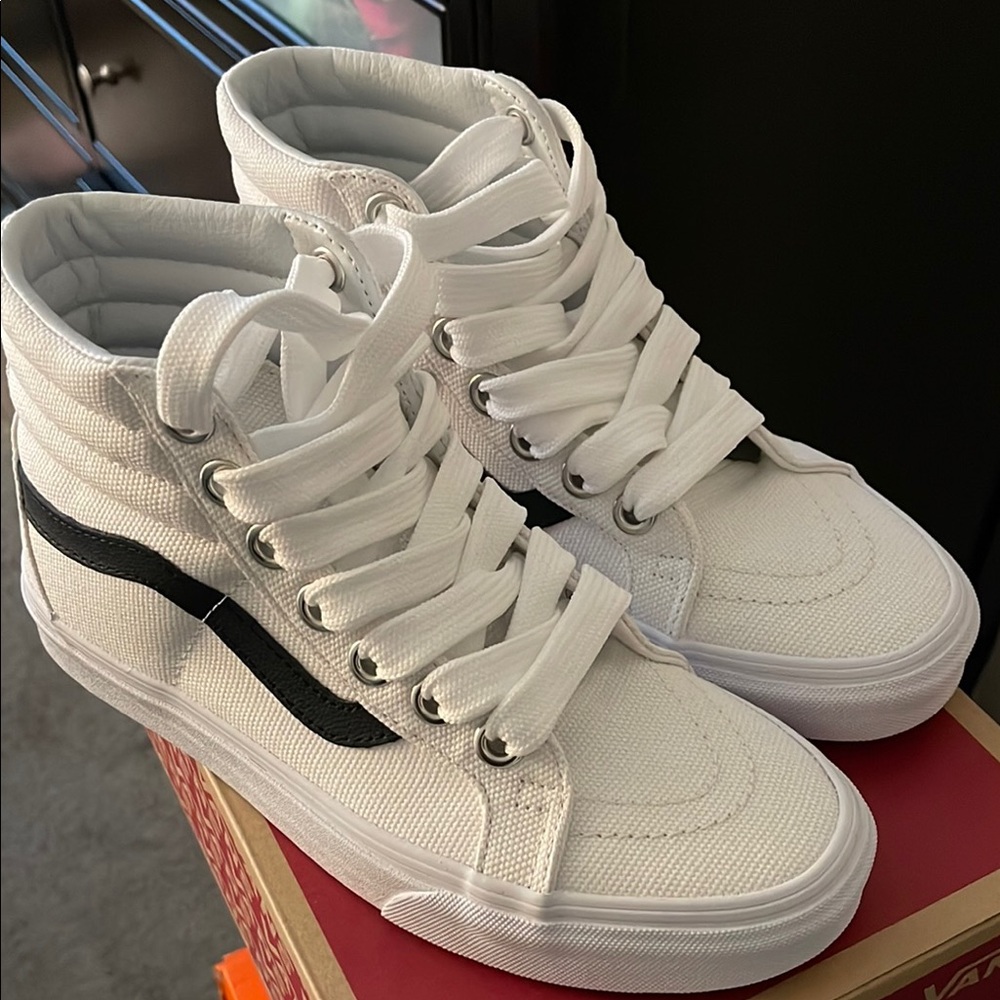 True white, SK8-HI with oversized laces. US men 6.5/women 8.0. Brand new never worn.