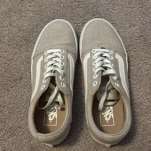 Women’s classic vans sneakers. Women’s size 8. Worn once, basically brand new. Couple scuffs on toe rubber but otherwise no signs of wear. Cute oatmeal brown/tan color. Perfect neutral and go with everything! Paid $60 brand new