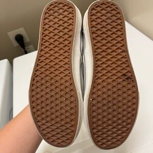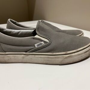 Classic Vans slip-on sneakers in gray. Easy to wear and stylish for any occasion.