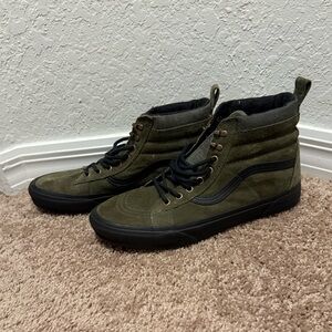 Green vans that are some one used but still in amazing condition.