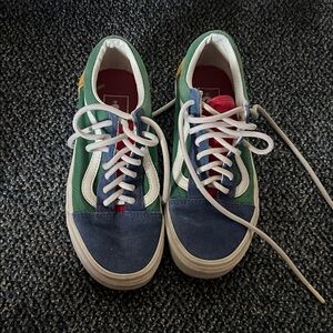Vibrant kids sneakers featuring a playful mix of blue, green, and yellow. Perfect for adding a splash of color to any outfit.