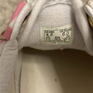 Worn maybe 3 times. Just not my vibe. Women’s size 6. Pink red white with gold shoelace gromets