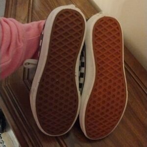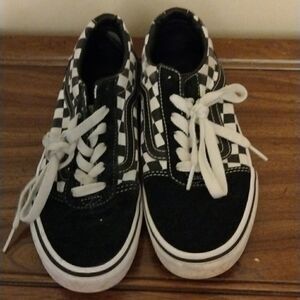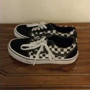 Super cute black and white checkered Vans. Suede heel and toe, canvas body. A-9