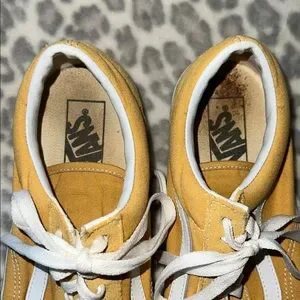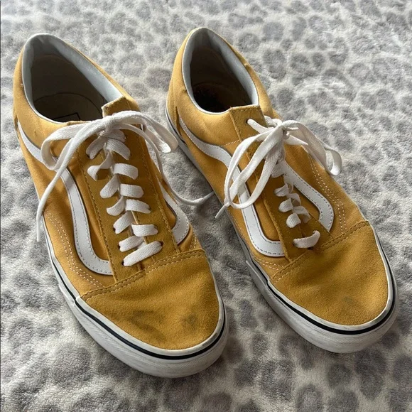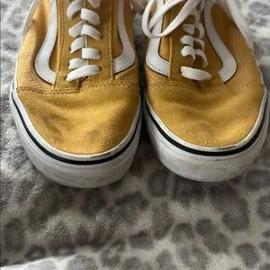 Vans, women’s size 9, yellow, used condition, scuffed and worn, sold as is