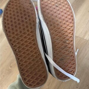 Classic Vans sneakers with a black canvas and white accents. Woman's 7.5 Great condition