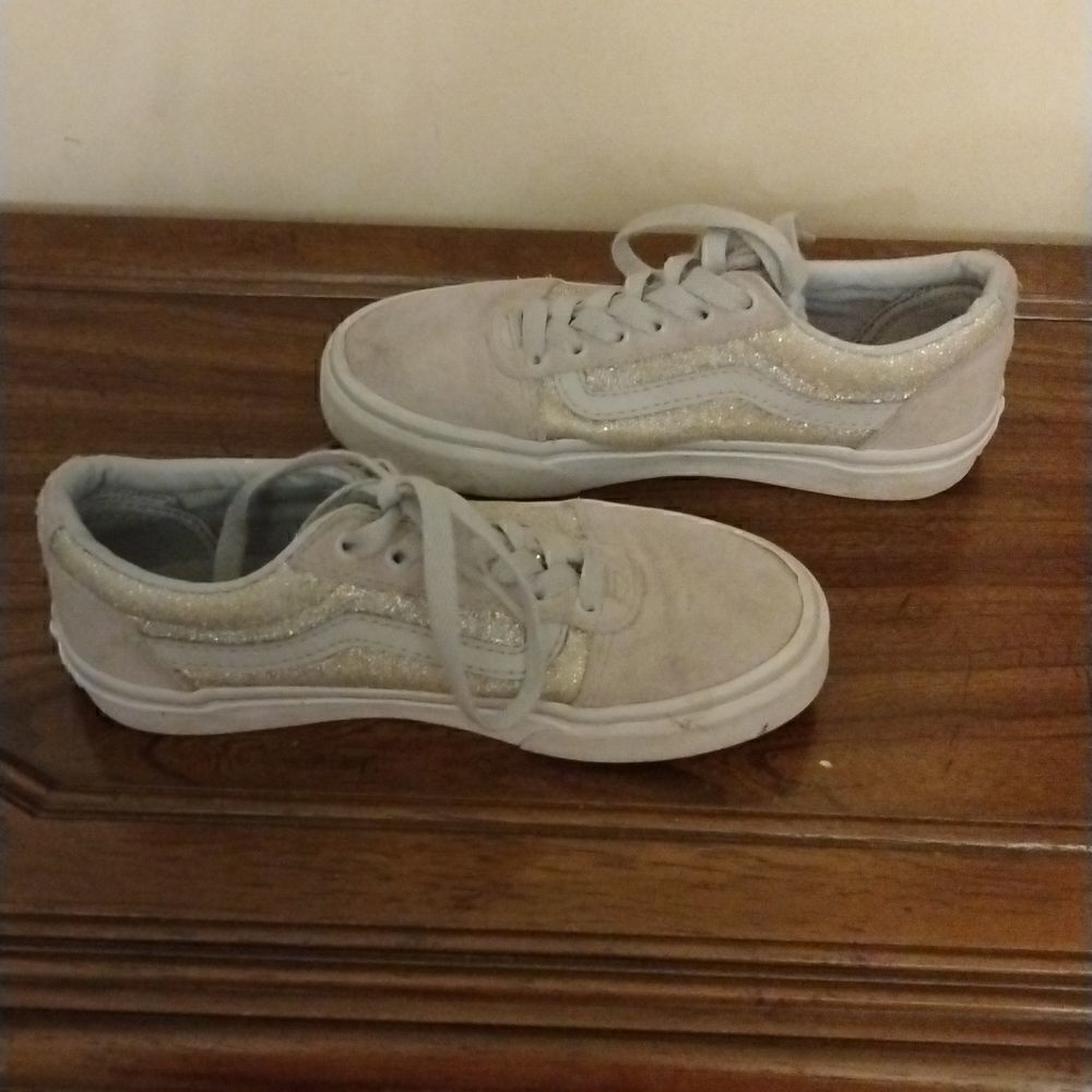 Silver sparkle girls Vans with suede toe and heel. Worn condition but have a lot of life left. A-9