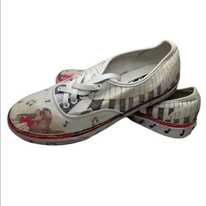 Vans White with Hand Painted design of Piano Keyboard and Musical Notes