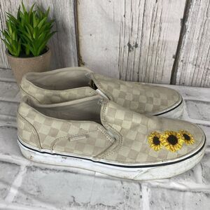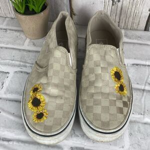 Vans Asher Checkerboard Embroidered Sunflower Slip On Size 8