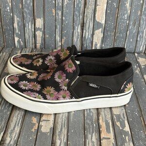 Vans Asher Dark Floral Womens Shoes Size 7.5 Slip-On Black Pink Skate