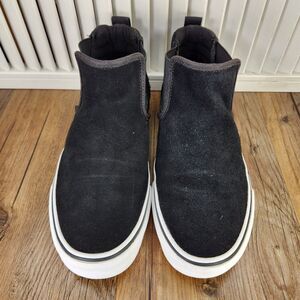 Vans Asher Mid Womens Sz 8 Black Suede Pull On Chelsea Ankle Sneaker Boots Shoes