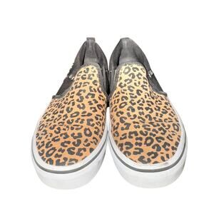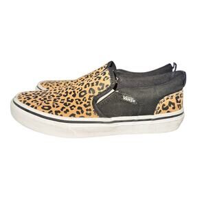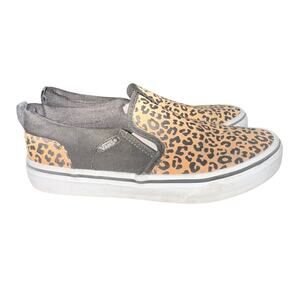 Vans Asher Slip On Sneakers Big Kid's Missy Sz 3 Leopard Print Canvas Skate Shoe