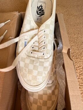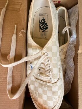 Men’s 9 white/white checkerboard. Shoes have been worn so price reflects.