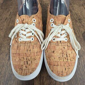 Vans Authentic Cork Skate Shoes Sneakers 9 Tan Brown White Unisex Grunge Casual