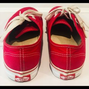 The Authentic, Vans original and now iconic style, is a simple low top, lace-up with durable canvas upper, metal eyelets, Vans flag label and Vans original Waffle Outsole. In good condition few small stains on the front canvas part of the sneaker but easy to clean, normal wear to the sole of the shoe.