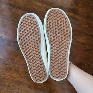 These Vans Authentic Shoes are the original vans silhouette from Vans 1966 origin. Low top with the classic waffle outsole. This super cool golden yellow color is discontinued on the Vans website, so only available on the used market :)