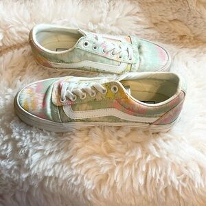 Vans Ward Low Top Sneaker Canvas Psychedelic Tie Dye US Women's Size 6 These SK8 shoes are very spring ready, perfect spring shoe ! I wore these a couple of times.My sneakers are in excellent pre-owned condition. The tye dye psychedelic look is very 90’s & hippie style.
