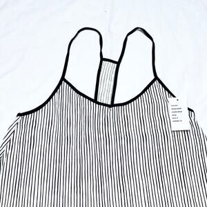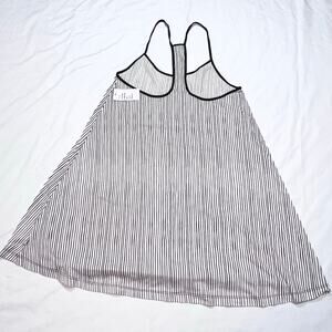 Introducing a Vans babydoll mini dress in women's small, in white and black striped pattern. This T-shirt style dress features a relaxed fit with spaghetti straps and soft cotton material, and is new with tags.