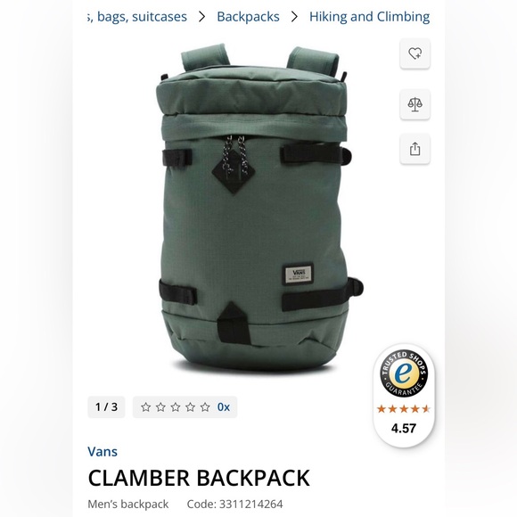 Vans men green backpack in style “clamber” . Lightweight, a large main zip pocket, a laptop space, and water resistant treatment.