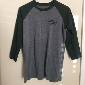 First pic is the back of the shirt. Its in a boys Large so it fits as a women's small. Unisex. In a sexy forest green with heather grey.