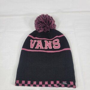 Vans Beanie Hat Adult One Size Pom Check Stripe Pink Skater Casual Warm Winter. Pre-owned, clean
