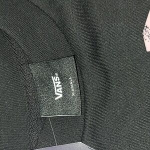 Embrace a classic look with the Vans black crewneck sweater, featuring a striking eagle-themed graphic in yellow and white. This pullover style offers comfort with its ribbed cuffs and collar, crafted from a soft cotton blend. Perfect for casual outings, the crisp design stands out against the deep black fabric.