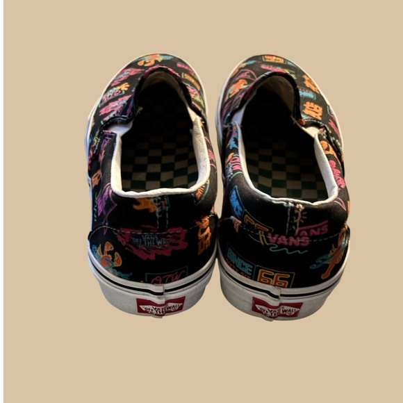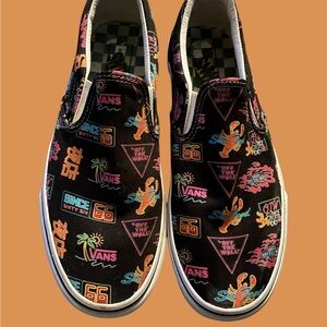 Vans sneakers with vibrant graphics on a black base. Barely worn limited edition vans