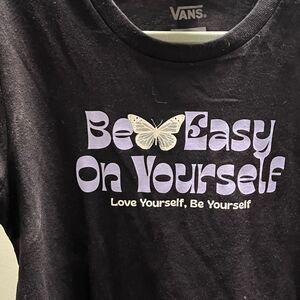 Vans black t-shirt with a butterfly and motivational text design. Stylish and comfortable. Length 24”, Pit to pit 19” From a smoke free home.