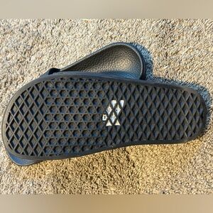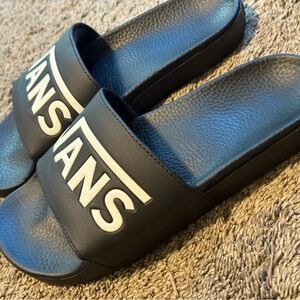 Classic black slides featuring bold white Vans logo. Perfect for casual wear. Excellent used condition. Maybe wore them 5 times. Size 7