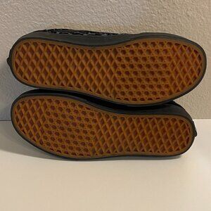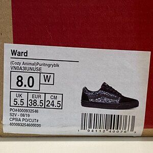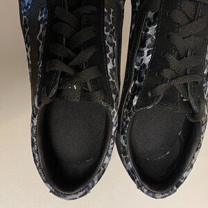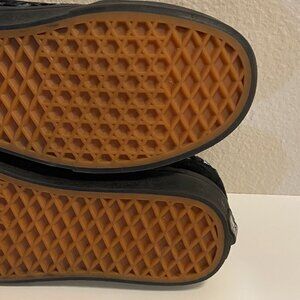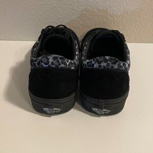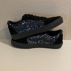 Stylish Vans sneakers with a black and blue leopard print design. Comfortable and trendy.