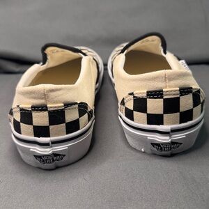 Vans Black and Cream Checkered Slip-Ons