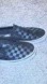 Classic Vans slip-ons with a black and gray checkered design. Easy to wear and stylish.