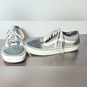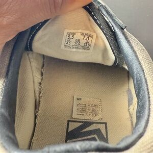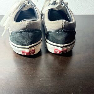 Classic Vans sneakers in black and cream. Comfortable and stylish for everyday wear.