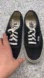Experience timeless style with Vans' black and white canvas sneakers, featuring a low-top silhouette and durable rubber outsole with signature waffle pattern. These sneakers offer a versatile and comfortable fit, perfect for everyday wear.