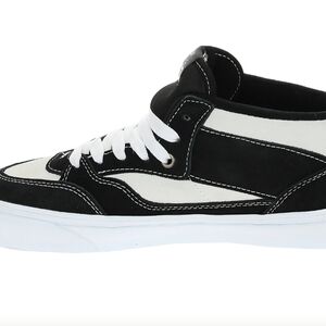 The Vans OG Vault Skate Half Cab LX '92 Shoes in Black/Marshmallow, size 8 for men, are a new addition to the VANS collection. Featuring a suede upper material, these sneakers offer a stylish and comfortable option for athletic wear. With a classic black color and subtle marshmallow accents, these shoes are perfect for both casual and skate-inspired looks. The Vans Half Cab style, combined with the iconic Vans branding, makes these shoes a must-have for any sneaker enthusiast.