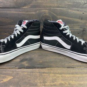 Stylish high-top design. Classic Vans stripe. Durable and comfortable. No laces!