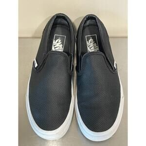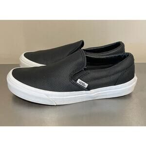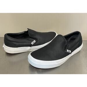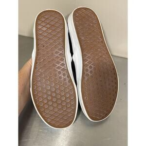 Sleek black mules with white soles. Perforated design. Slip-on style.