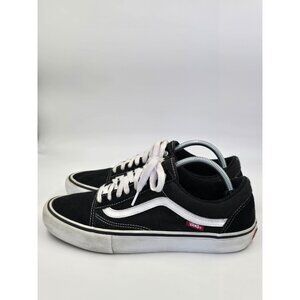 Classic Vans sneakers. Black canvas with white accents. Iconic side stripe. Comfortable and stylish.