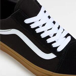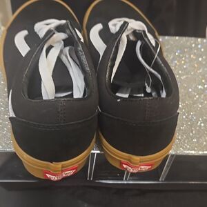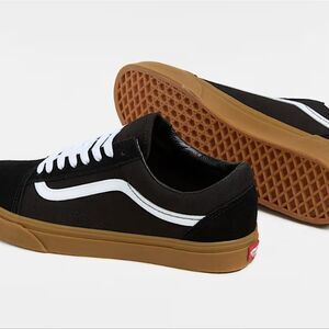 Classic Vans sneakers. Black upper with white stripe. Gum sole. Bought these NWOT on Poshmark and haven’t worn them other than to try on. In perfect condition! I’m just working on changing my wardrobe and don’t reach for black much anymore