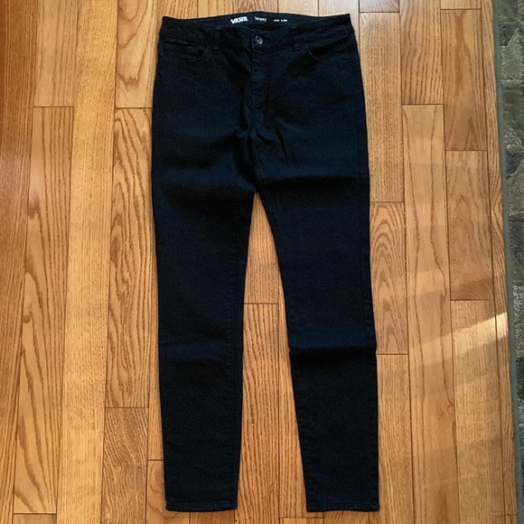 Women’s size 9 Classic black jeans for a sleek and versatile look. Made of canvas material instead of denim. Perfect for any occasion. 16” across at waist. 9” rise. 30” inseam. Like new condition!