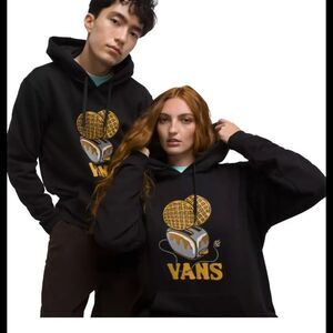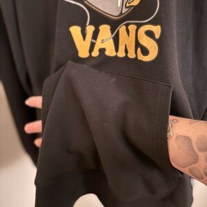 Stylish black Vans hoodie with 'Off The Wall' logo accent. Perfect for casual wear. In excellent condition. Size small